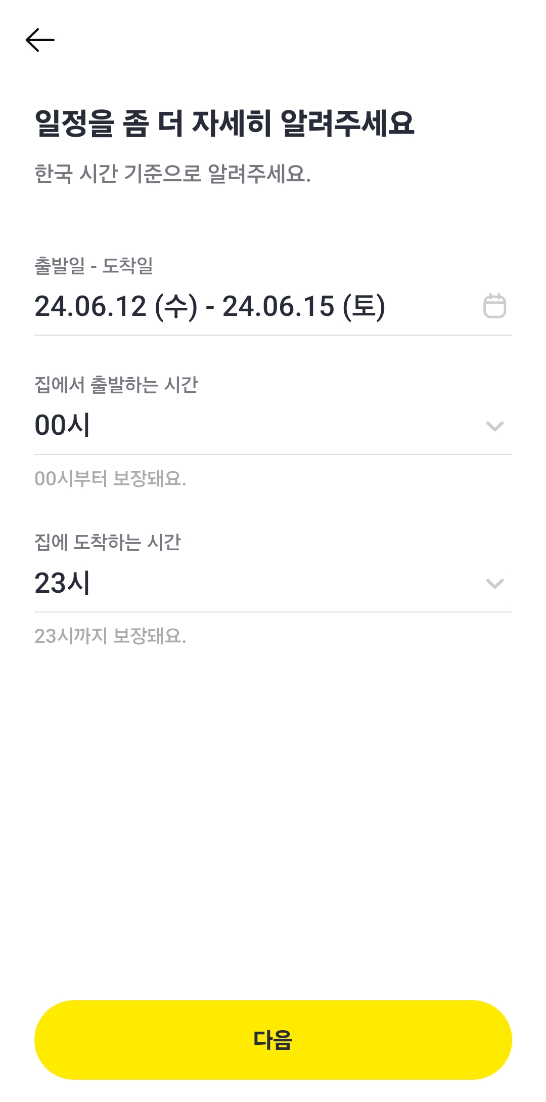 6. 여행 출발시간과 도착시간을 자세히 선택합니다.