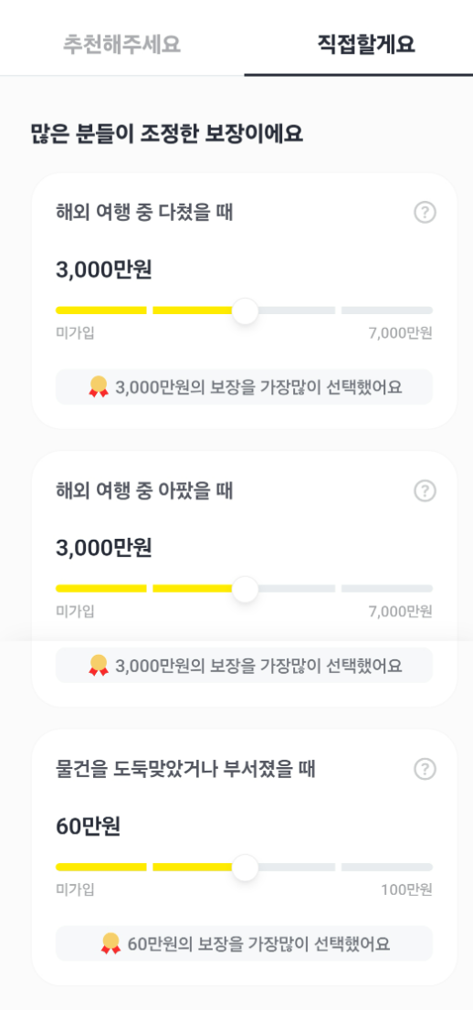 ② [직접할게요] 가입자가 직접 보장범위를 조정할 수 있습니다.